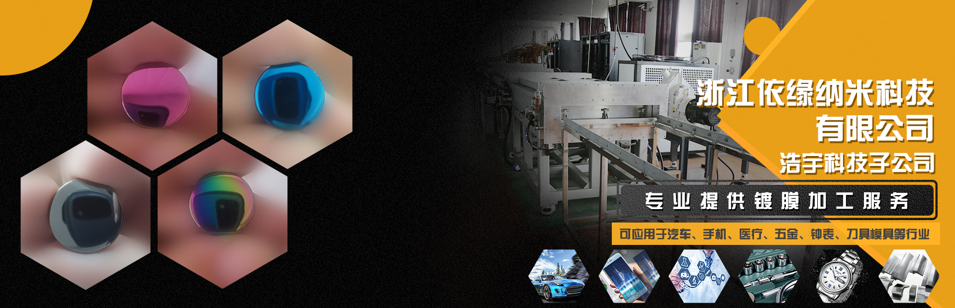 專業定制連續鍍膜生產線,多弧離子鍍膜設備、中頻磁控濺射鍍膜設備和試驗型鍍膜設備,并提供鍍膜加工服務,業務涉及手表、飾品、手機殼、日用五金、燈飾、汽車配件等,可在銅、鋅合金、不銹鋼、陶瓷、玻璃、塑料、陶瓷等工件表面進行裝飾鍍層和功能鍍層的加工。